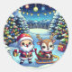 Cute Cartoon Santa and Reindeer Christmas Classic Round Sticker
