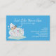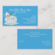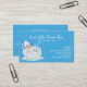 Cute spa business card done in turquoise blue, with whimsical graphics of a cartoon lady in a bubbly bathtub. Personalize the white text to suit your needs.