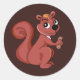 Round stickers with an illustration of a cute red squirrel holding a peanuts, a cute animal design for kids by Radka Kavalcova