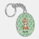 Cute Cartoon Tiger on Tropical Leaves Keychain
