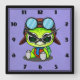 Cute Cartoon Turtle in Aviator Hat Square Wall Clock