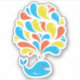 Cute whale sticker with a colourful illustration of a smiling cartoon whale splashing bright blue, yellow and orange swirls. This cute sticker is great for all the whale loving girls out there who also happen to love fun, bright colours.
