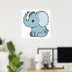 Adorable whimsical cartoon baby grey elephant with a tiny pink love heart over the top of her trunk.