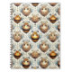 Cute, cartoonish bees with fluffy bodies and small wings, arranged in a repetitive design. The bees display various expressions, with swirly antennae and soft, rounded shapes, set against a light background adorned with spirals and hearts.