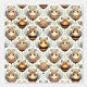 Cute, cartoonish bees with fluffy bodies and small wings, arranged in a repetitive design. The bees display various expressions, with swirly antennae and soft, rounded shapes, set against a light background adorned with spirals and hearts.