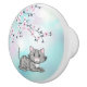 Cute Cat and Cherry Blossoms Turquoise Girls Ceramic Knob
