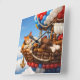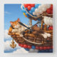 A playful orange cat lounges in a colorful hot air balloon floating high in the sky, surrounded by bright balloons and soft clouds. This joyful wall clock design brings fun, imagination, and warmth into any kids room.