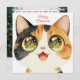 Send festive cheer with this irresistibly cute Christmas card featuring a wide-eyed calico cat sparkling with holiday magic. The front showcases whimsical illustrated charm, while the fully personalizable back allows you to add your own family photo, custom message, names, or holiday wishes. Perfect for cat lovers, families, and anyone wanting a playful and heartwarming Christmas greeting that stands out.