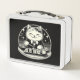 The sturdy metal construction ensures that this lunchbox is built to last, keeping your lunch safe while turning heads in classrooms, cafeterias, break rooms, or wherever else you enjoy your midday meal. The design features a happy kitty with big eyes and a wide smile, seated in front of a delightful sushi spread—nigiri, rolls, and maybe even a side of wasabi, all rendered in a playful black and white illustration that feels both modern and timeless. It's a love letter to all things delicious and adorable, and a true celebration of kawaii culture, making it a fun and useful item for kids, teens, and adults alike.