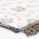 Cute pattern with a grey cat, pink paw prints, and pink and grey fish bones.