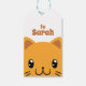 A cute cat with custom name and a little paw on the bottom of the reverse side.