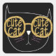 Cute Cat Glasses Graphic Gold Glitter Kitty Face Square Sticker