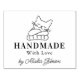 This "Handmade with love" stamp features a cute cat with a ball of wool and a custom name.
