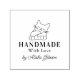 This "Handmade with love" stamp features a cute cat with a ball of wool and a custom name.