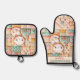 Cute Cat Home Patchwork Cozy Pastel Custom Name Oven Mitt & Pot Holder Set