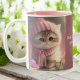 Cute Cat in Pink Knit Hat Yarn Personalized Two-Tone Coffee Mug
