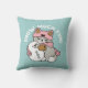 Cute Cat in Snow Gear with Snowman Art Throw Pillow