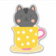 Cute cat in teacup cartoon on mint