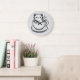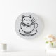 Add charm and personality to your space with this adorable cat in a teacup wall clock. Featuring a sweet, hand-drawn style kitten nestled inside a cozy cup, this black-and-white illustration blends playful whimsy with clean minimalist design.