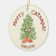 Bring a touch of feline charm to your holiday décor with the Cute Cat on Christmas Tree Merry Catnaps! Ceramic Ornament. This adorable keepsake showcases an orange cat peacefully napping atop a festively decorated Christmas tree, adorned with golden ornaments and nestled above two colourful presents. Above the scene, the text reads "Merry Catnaps!", and below there's a customizable line to add your cat’s name and the year for a truly personal touch. The back of the ornament offers space for a family photo or a picture of your beloved pet, making it a treasured memento for years to come. Perfect for cat lovers and a delightful way to celebrate the holidays with a bit of humour and warmth.