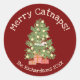 The Cute Cat on Christmas Tree Merry Catnaps! Red Classic Round Sticker is the perfect festive accent for your holiday season. It features a charming orange cat snoozing peacefully on a Christmas tree, decorated with yellow ornaments and with two presents tucked underneath. Above the cozy scene, the playful phrase "Merry Catnaps!" is written in cream lettering, and below there’s space to personalize with your family name and year. The bold red background adds a classic holiday feel, making this sticker ideal for gift wrapping, sealing Christmas cards, party favours, or holiday mailings.
