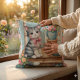 Cute Cat on Porch with Flowers & Patchwork Throw Pillow
