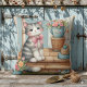 This charming design features an adorable grey tabby cat with bright eyes and a pink gingham bow, sitting sweetly on a rustic porch surrounded by whimsical details. The cozy cottagecore aesthetic is brought to life with soft pastel florals in vintage-style pitchers, woven baskets, and quaint shoes resting on wooden steps. Framed by a colourful patchwork quilt border, the entire scene feels like a snapshot of a peaceful spring morning in a lovingly curated home. Perfect for anyone drawn to pastel decor, shabby chic elegance, or the warmth of nostalgic countryside imagery, this artwork adds a sense of comfort and gentle joy wherever it's displayed. The soft watercolor art style and intricate details make it ideal for evoking springtime vibes and a sense of slow, cozy living. AI generated artwork.