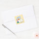 Cute Cat on top of a Book Stack on Yellow Square Sticker