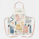 Cute watercolor blush pink, blue cat pattern script name apron. Personalize with name.