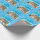 Cute and Fun Cat Pet Typography Christmas Photo Wrapping Paper. The design has a Xmas text in white script on a blue colour splash. Personalize the wrapping paper with your cat or any pet photo.