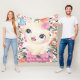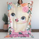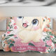 Cute Cat Pink Roses Blush Flowers Custom Name Fleece Blanket