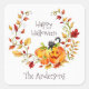 Cute Cat Pumpkins Autumn Leaves Wreath Halloween Square Sticker