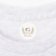 A cute child or baby iron on clothing labels with a Gender neutral soft watercolor illustration of a cat or kitten with a crown and leaves on a dotted patterned background.