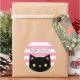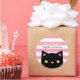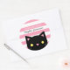 Sticker featuring a cute black cat, and pink and white stripes. This book belongs to sticker.