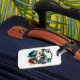 Pleasantly surprised at the quality of the luggage tag. It was exactly as shown and my daughter will be pleased. The address label on the back of the luggage tag was neat and clear.