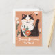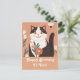 A cute cartoon cat with flowers on the peach background personalized greeting card.