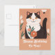 Cute Cat with Flowers Happy Birthday Personalized Holiday Postcard