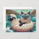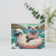 Cute Cat With on Sheep Floatie in Mountain Lake Postcard