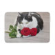 Cute cat with the red rose bath mat