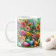This holiday created coffee mug features a darling AI image of cute cats hiding in a spring flower garden. There is also colorful easter eggs nestled in the green grass. A mug like this one would be very festive for your Easter holiday gathering. It would also be a thoughtful gift for anyone who loves the spring season and cats.