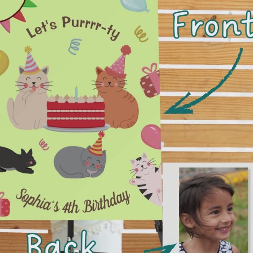 Serve up the fun with the Cute Cats Kid's Birthday Party Paper Plates! These playful plates feature an adorable scene with two cats in birthday hats centred around a birthday cake—one licking cream from its paw, surrounded by a rolled-up white cat, a sleepy cat, and festive birthday elements like serpentines, gifts, balloons, and a colourful party banner. Set against a soft green background, the top of the plate reads "Let’s Purrrrty", and the bottom offers space to add the birthday child’s name and age. Perfect for little cat lovers and party animals alike!