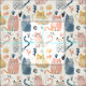 Cute cats watercolor pattern Fabric