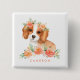 An adorable pin button featuring illustrations of a watercolour Cavalier King Charles Spaniel and peach flowers. Personalize by adding your own texts. This dog theme pin button is the perfect gift for dog lovers and Cavalier King Charles Spaniel owners.