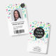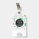 A modern, and professional cute watercolor chameleons and flowers pattern pediatrician doctor or nurse photo id badge with logo and barcode.