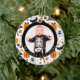 Colourful and fun ornament to remember Baby's First Halloween. The ornament features a Halloween pattern on the background and a black border with the words "My First Halloween". A cute picture of the baby in his costume is placed in the centre. The back includes additional details.