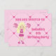 This adorable pink cheerleading birthday party postcard invitation features a pretty blonde cheerleader girl in a cheer uniform holding pink pom poms. Personalize this cute children's party invite with your child's name in lovely pink and write your details on the back of this postcard.