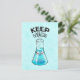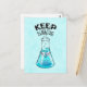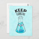 Cute chemistry postcard for women in science with a nerdy smiling flask character with glasses and the funny text Keep Bubbling.