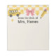 Brighten up your classroom or office with these trendy teacher sticky notes! Featuring a playful yellow chequerboard top, pink bow, cheerful school bus, pencils, and a smiling flower, this notepad is both functional and fun. The design includes “From the desk of [Your Name]” for a personalized touch while leaving plenty of white space for reminders, notes to students, or quick memos. A perfect teacher appreciation gift, back-to-school essential, or custom classroom accessory—sure to make writing notes extra cute and professional!