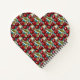 A watercolor ai illustration pattern of shiny red cherries, sage green foliage and blue and green chequered plaid heart shaped notebook.