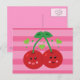 This adorably kawaii cherry illustration features two shiny red cherries with cute smiles, rosy cheeks and rich green leaves surrouned by sweet little green hearts! This cute cherry design is the perfect gift for anyone who loves cherries, kawaii art, cartoon fruit or stylish fun artwork!